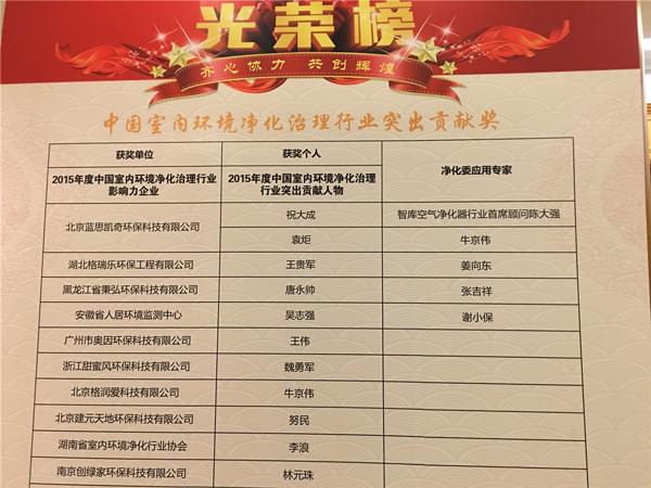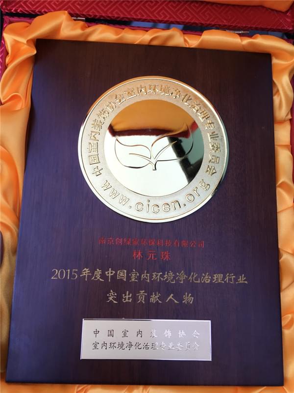會議上,中國室內(nèi)環(huán)境凈化治理專業(yè)委員會還就2015年各企業(yè)的工作成就與貢獻頒發(fā)了2015年度中國室內(nèi)環(huán)境凈化治理行業(yè)突出貢獻獎,創(chuàng)綠家環(huán)??萍加邢薰精@此殊榮!