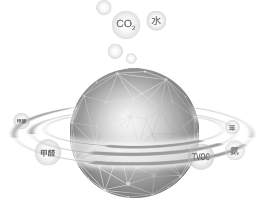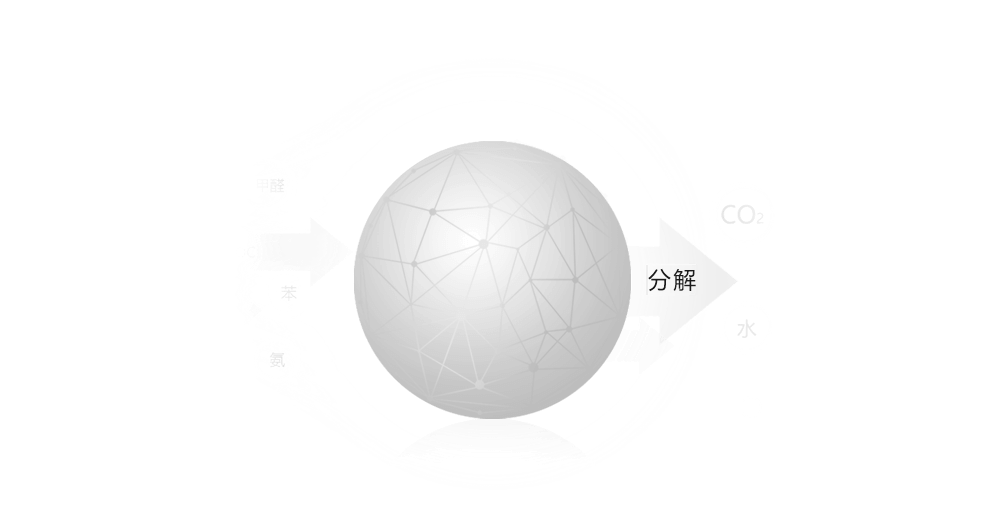 將甲醛、苯系物、TVOC等有害氣體分解成水、CO2 。固態(tài)光觸媒。具有吸附、鎖定、分解三大功能,